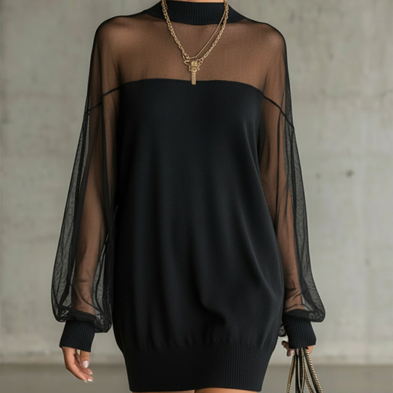 🎁New arrival 50% OFF💥Sheer Mesh Mock Neck Mini Dress👗