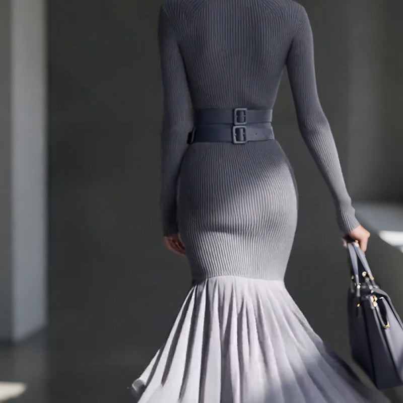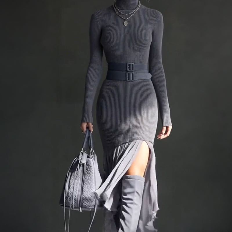 đMeet Christmas 50% OFFđ|Womenâs Ribbed Knit Turtleneck Patchwork Midi Dress